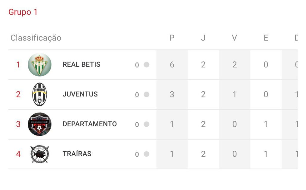 - Grupo 1: o Real Betis soma 6 pontos em 2 jogos, com 100% de aproveitamento, e já garantiu vaga antecipada na próxima fase.