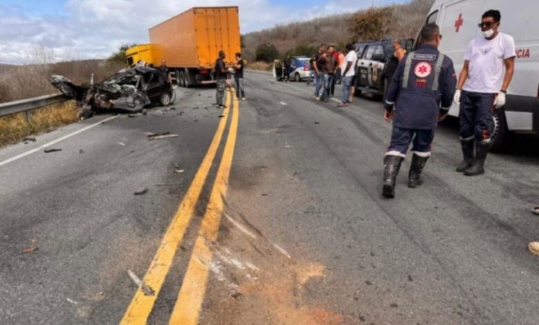 Homem morre em colisão frontal entre carro e carreta na BR-116, em Nova Itarana