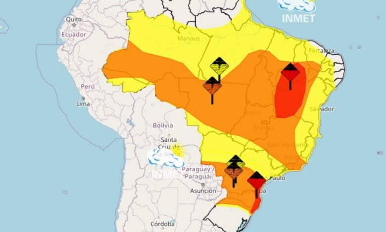 Desses, 138 cidades também aparecem no alerta laranja, que representa situação de “perigo”.