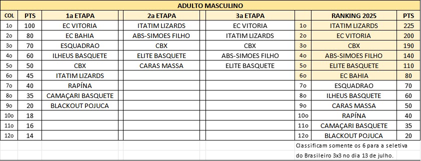 Já a equipe adulta de Itatim conquistou um feito ainda mais expressivo: encerrou a fase estadual na 1ª colocação geral, à frente de grandes clubes como Esporte Clube Vitória e Esporte Clube Bahia, ambos com tradição no basquete baiano.